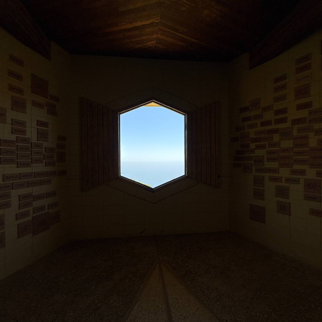 As I entered the rotunda, my eyes were drawn up to the redwood ceiling, curved perfectly to hold the sound of silence. I chose a spot along the wall with a meditation cushion and closed my eyes. The silence enveloped the room. Every so often I heard someone shift their position and then a pine cone would fall on the roof reverberating the sound of a tree letting go.
